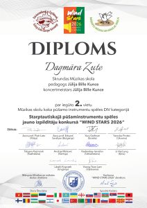 Ar lielu lepnumu un prieku sveicam Skrundas Mūzikas skolas Jūlijas Billes Kunces 5. saksofona klases audzēkni Dagmāru Zuti ar izcilo panākumu VII Starptautiskajā pūšaminstrumentu un sitaminstrumentu spēles jauno izpildītāju konkursā “Wind Stars 2026”!